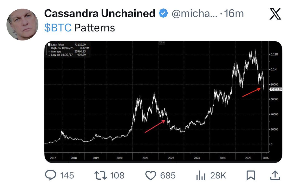 迈克尔·伯里 (Michael Burry) 刚刚发布了有关比特币的文章 看起来他认为我们的价格会低得多 随后又是两年的熊市