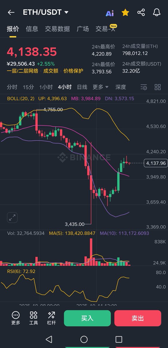 贝姐现在全凭信仰活到现在,很多人问我有没有抄底加仓了,确实加了,可惜加早了点。我还是满仓,11号凌晨崩盘的时候挂单都成交了,等于已经加过仓了,所以反弹起来我没再加仓了。