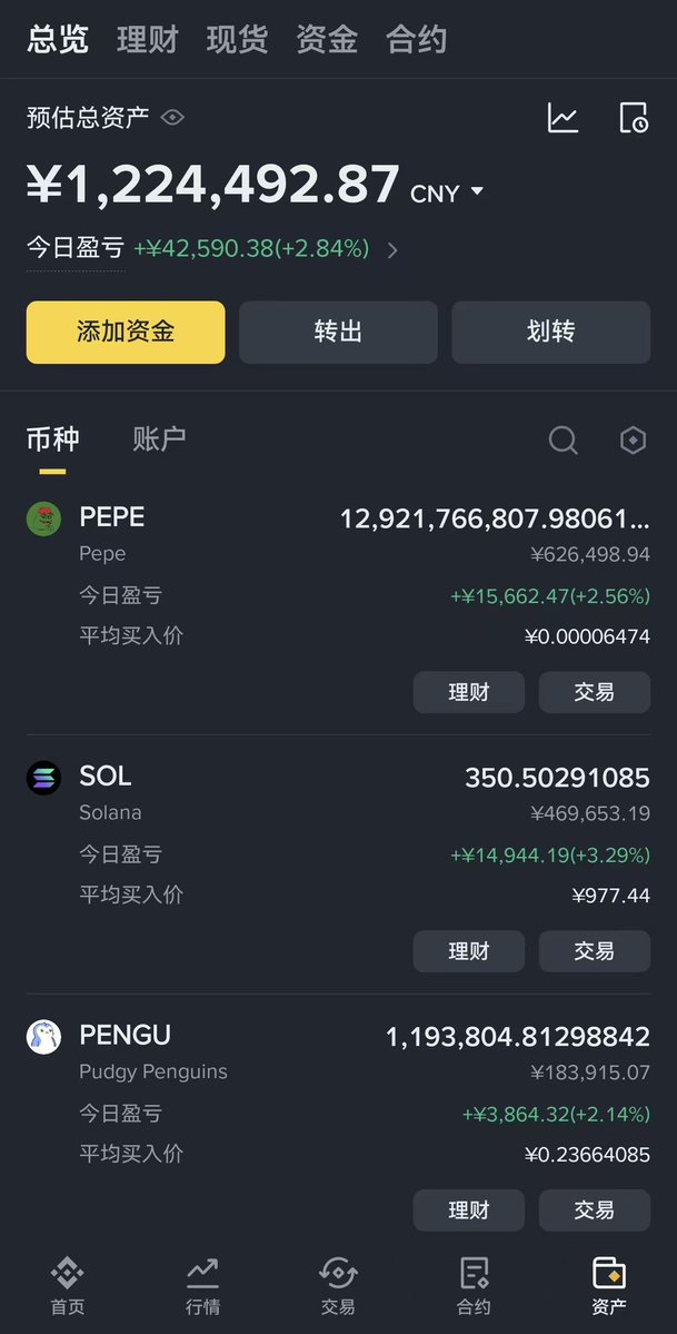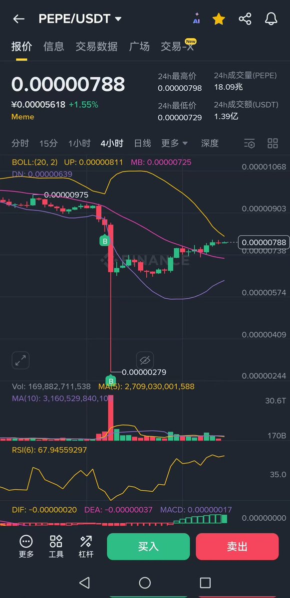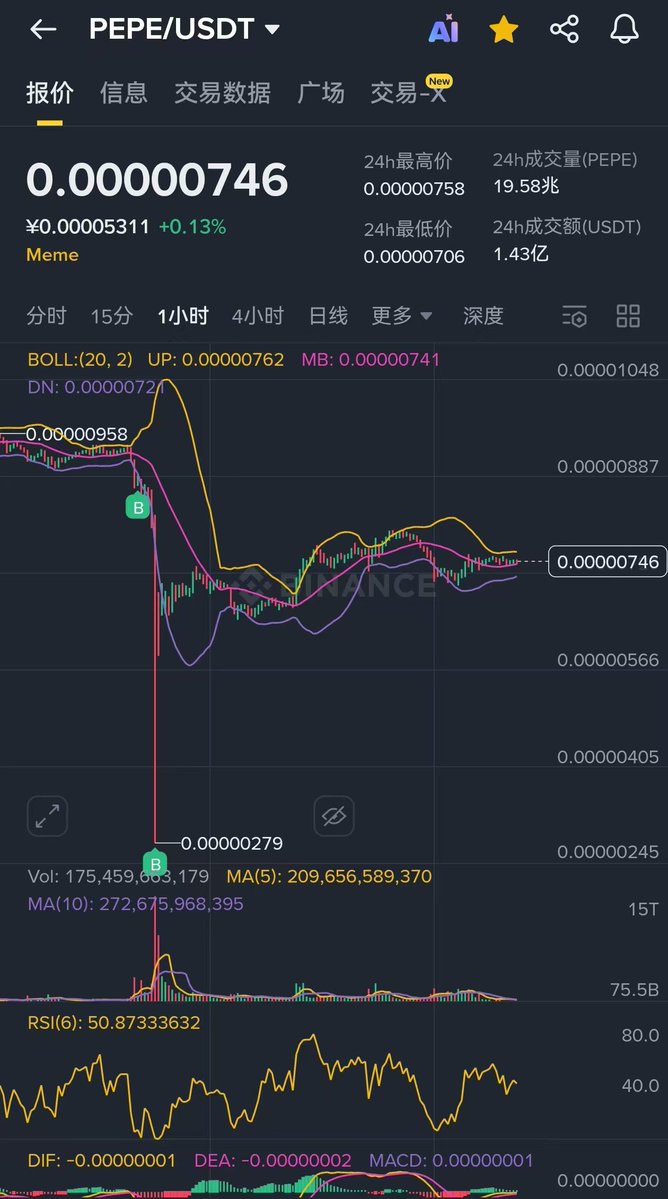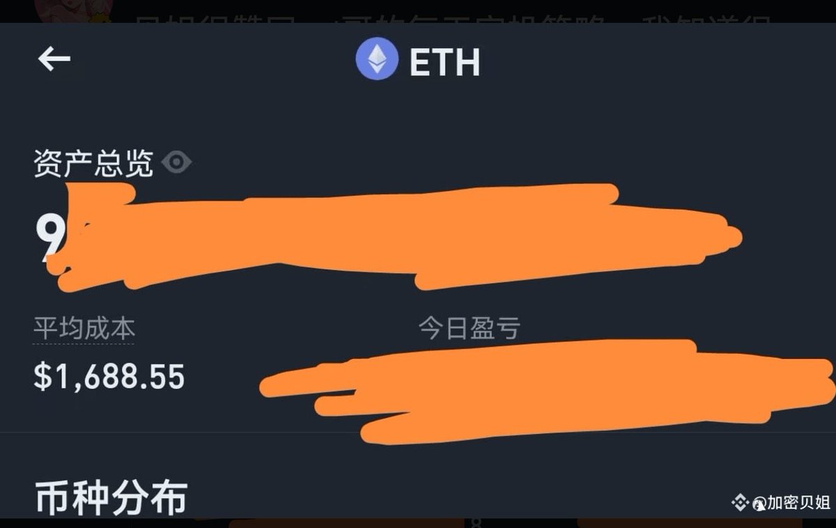 贝姐就是瞎几把折腾,eth1688的成本价,2000多的时候我全清仓了,转身就全部加仓了pepe,这轮牛市就是对山寨期望太大,格局太大,套死在山寨上了。我以为的pepe最少能回到0.00002000的位置,现实中的pepe给我插针到0.00000279。把我插爆仓。