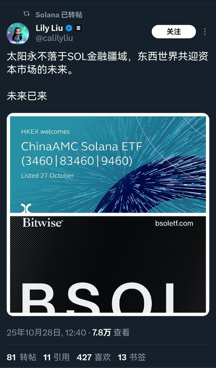 VanEck的Solana ETF与Canary Capital等公司的产品一两周内获得批准并开始交易。这将标志着美国加密货币ETF市场的重大扩张,为机构投资者提供了除比特币和以太坊之外的更多选择。Solana作为高性能公链的代表,其ETF的推出预计将为SOL来新的机构资金流入。