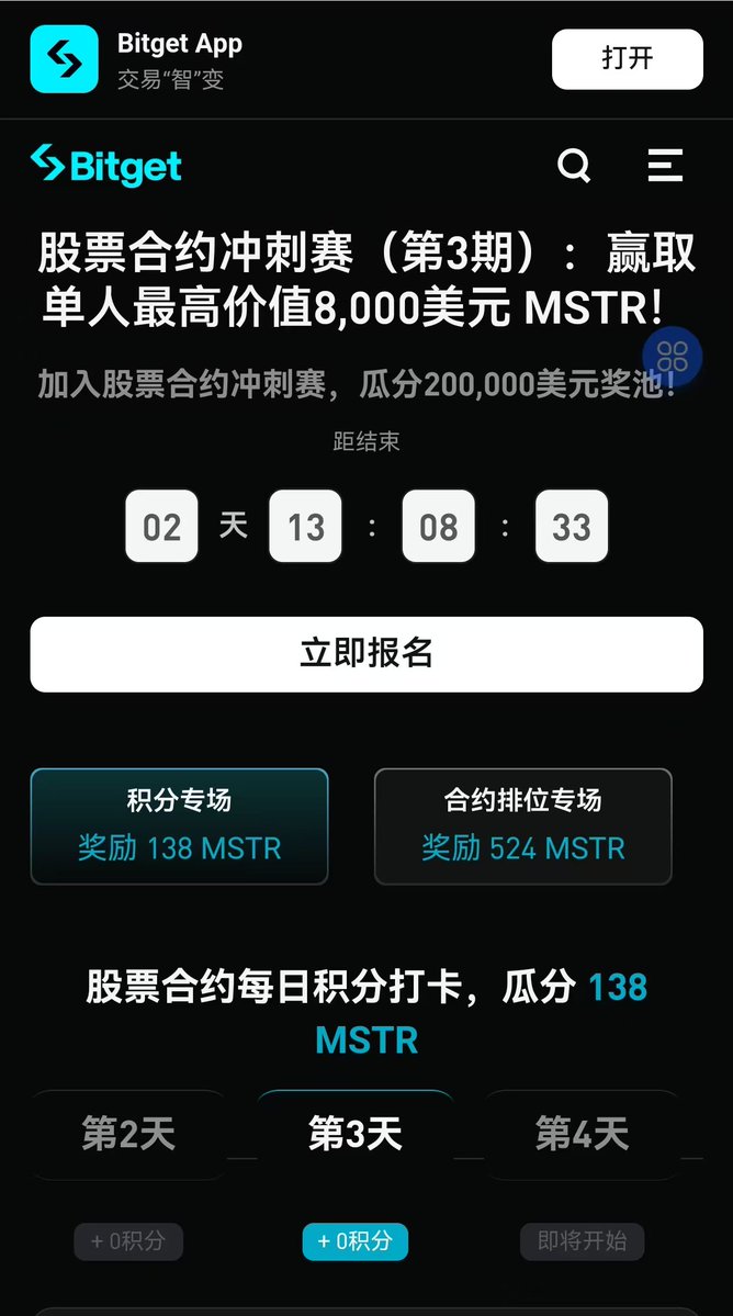 BIGET交易所股票合约冲刺赛第三期来啦,总奖池为价值$200,000的MSTR等额代币!