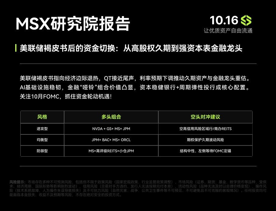 另一方面,JPM、BAC、MS 这些龙头,全在“降息+QT放缓”的组合拳下迎来Beta共振,再配点防守盘,比如高评级REITs、小仓JPM,中性对冲下,策略空间很舒服。