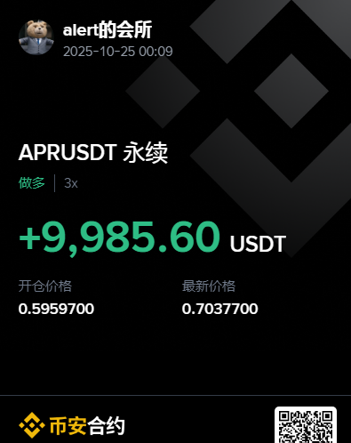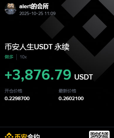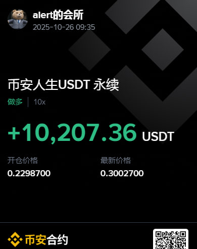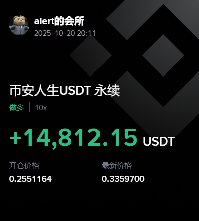 $币安人生 盈利一万刀,如引用推文所示,不马后炮。