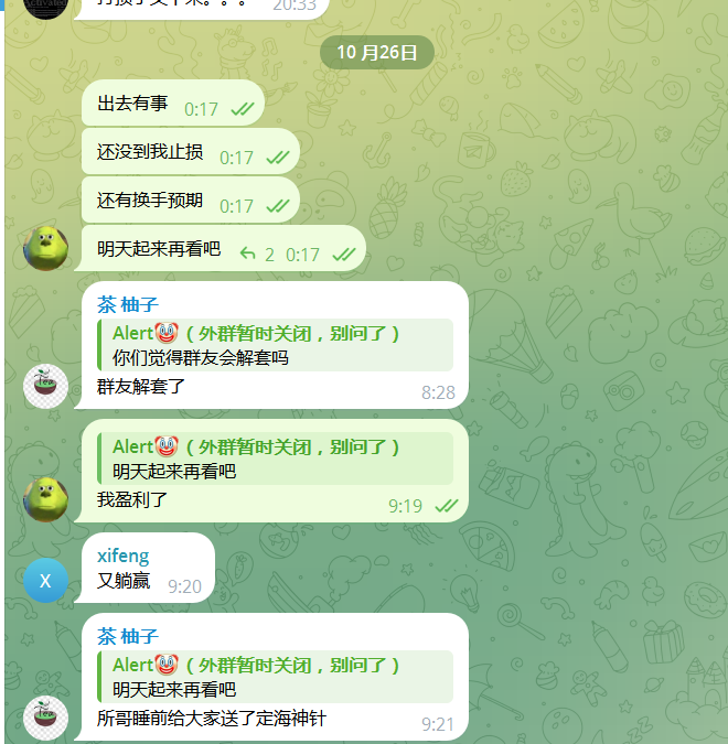 综上:我的自己的交易思路,同时告诉群友第二天起床在看,目前已经平仓,剩下的你们赚。