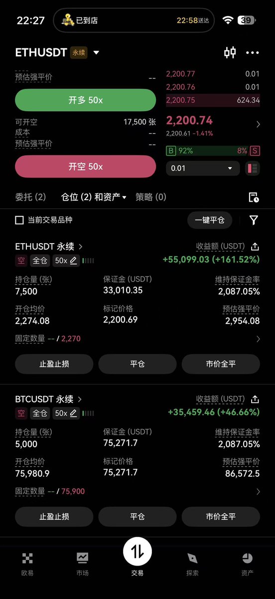 平掉了500w价值的空单。