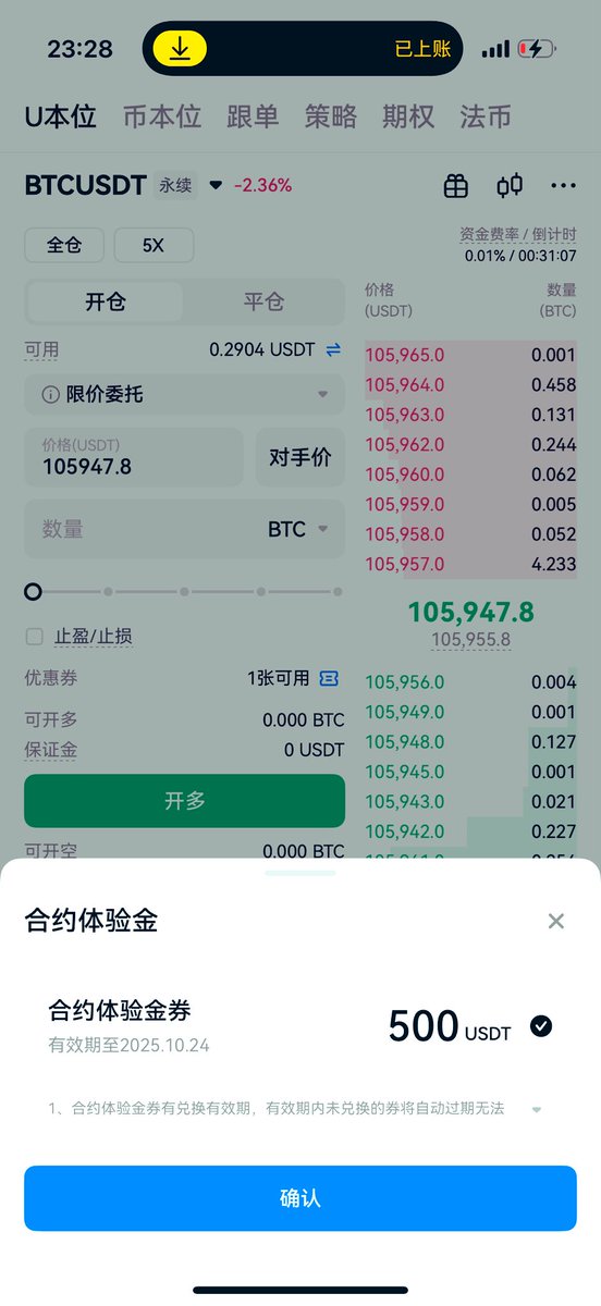 从不碰合约的,昨晚收到HTX空投的500usdt合约体验金,试着昨晚立马开了空,尝试一下做合约的感觉。