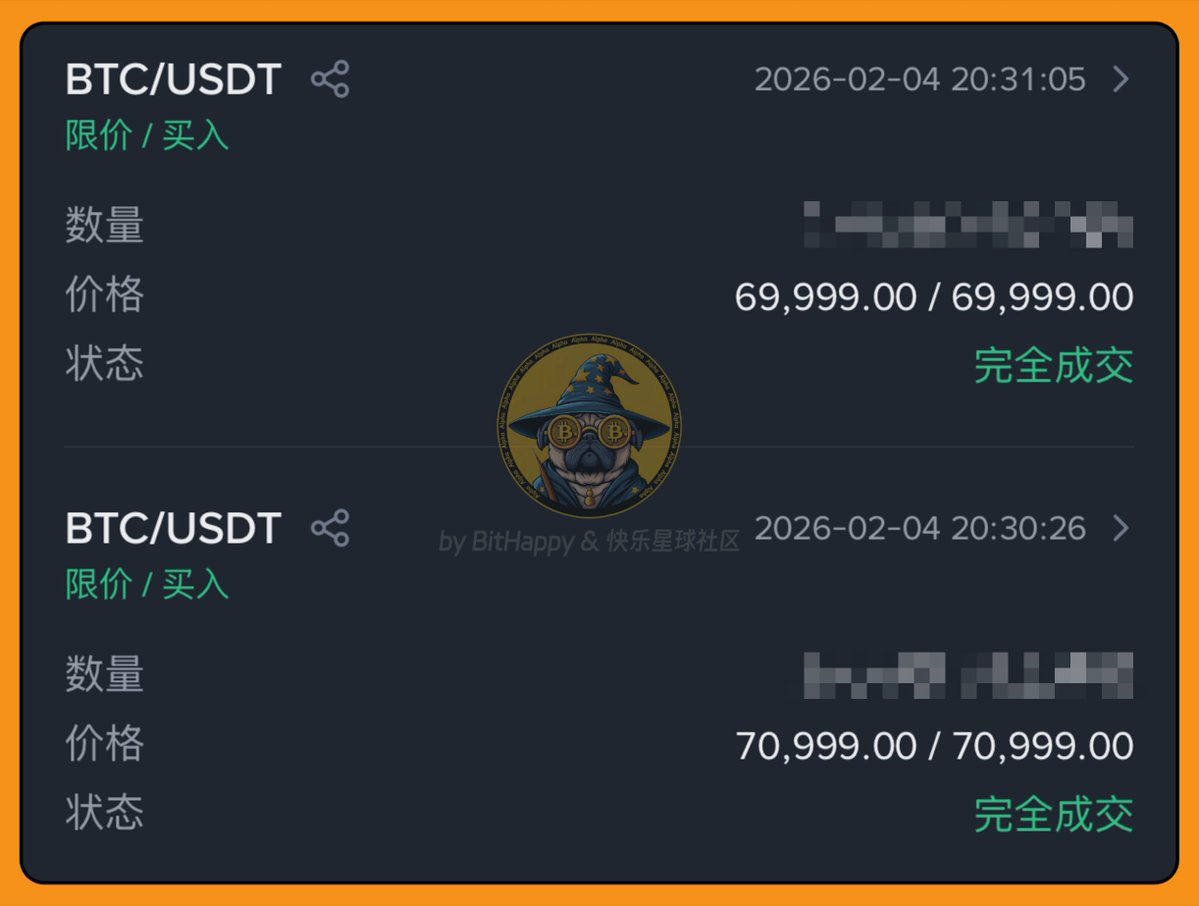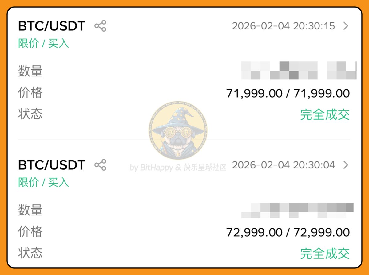 小伙伴 74500 的挂单没成交,反而是我的 DCA 吃到了一些货。