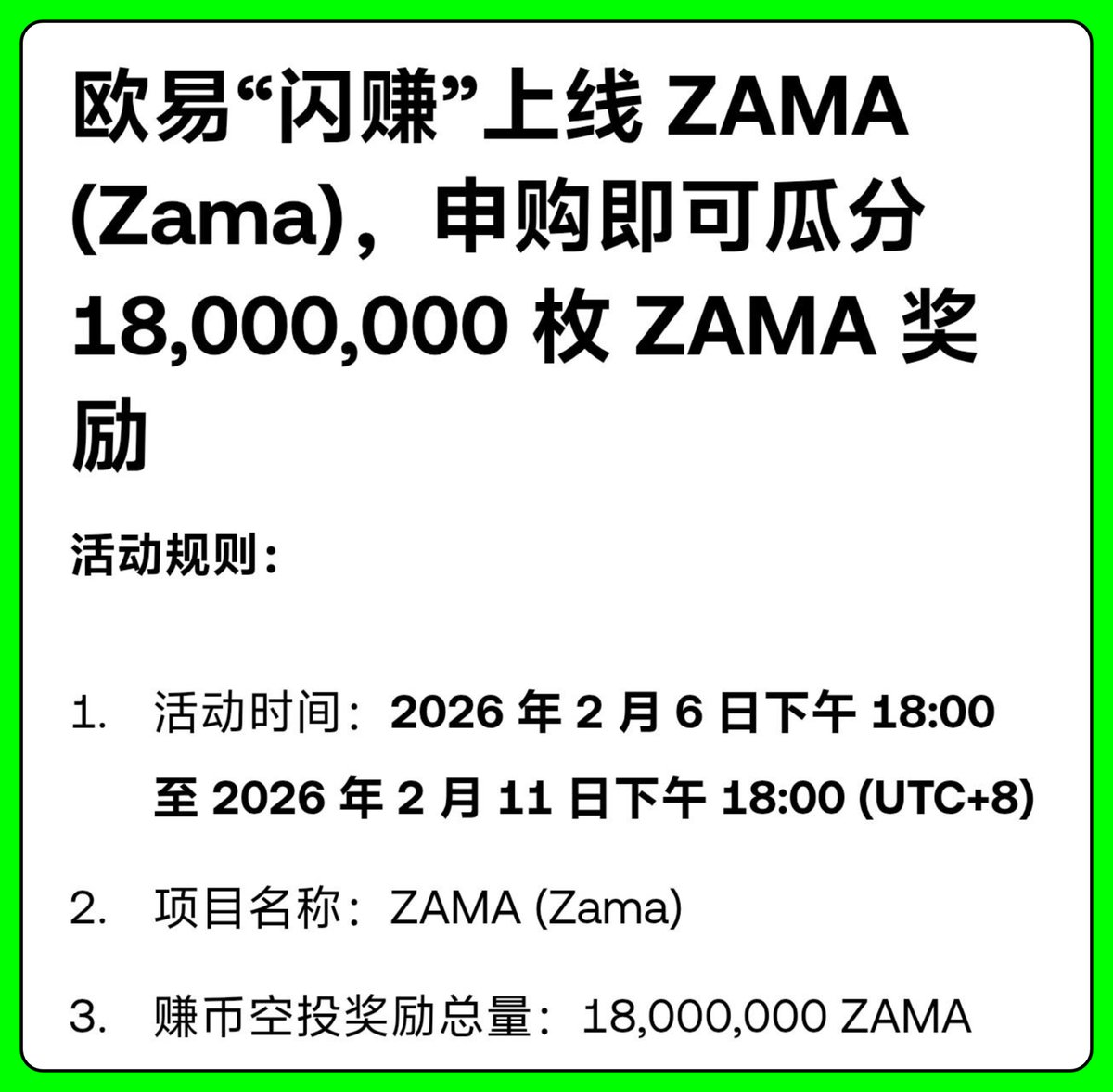 OKX 闪赚活动 $ZAMA 将于 2/6 18:00 开始~