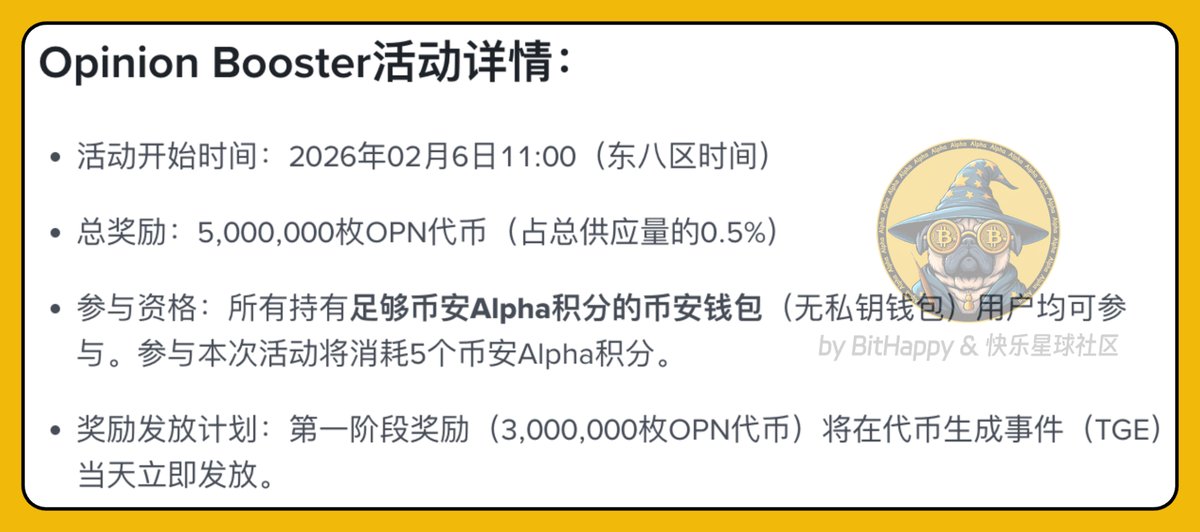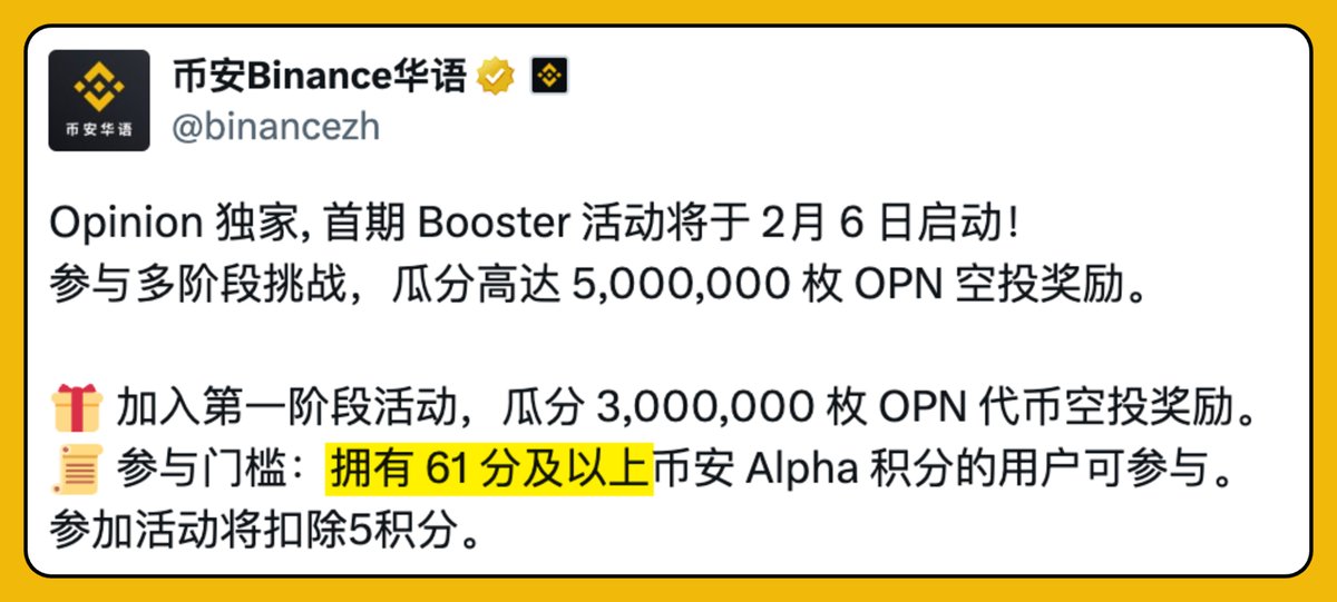 最新消息:Binance Wallet 即将上线 Opinion(OPN)的 Booster 活动。