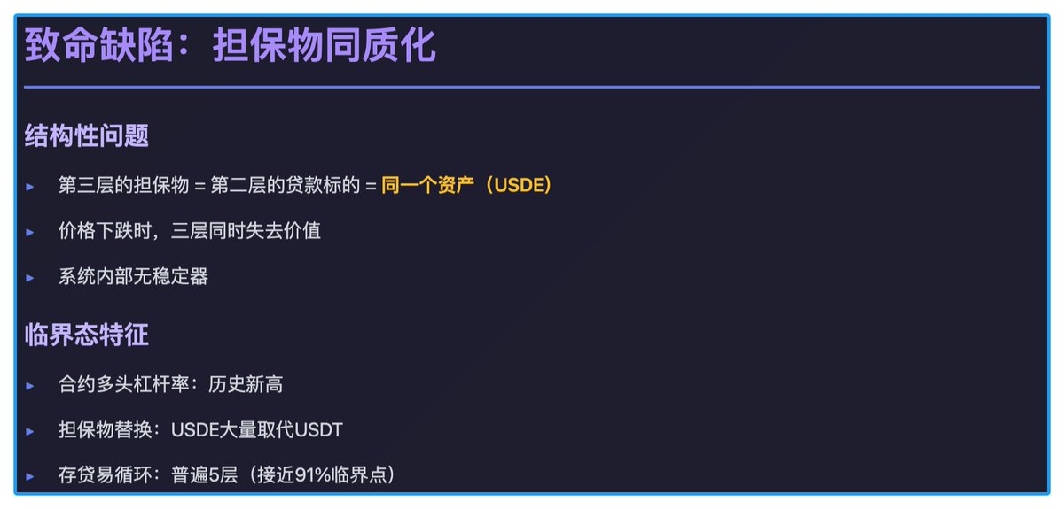 不过,在 1011 大跌中,因 USDe 引发的清算很严重,虽然链上因为预言机固定机制没受到影响,但可以预见,之后参与循环贷的资金会更加谨慎。