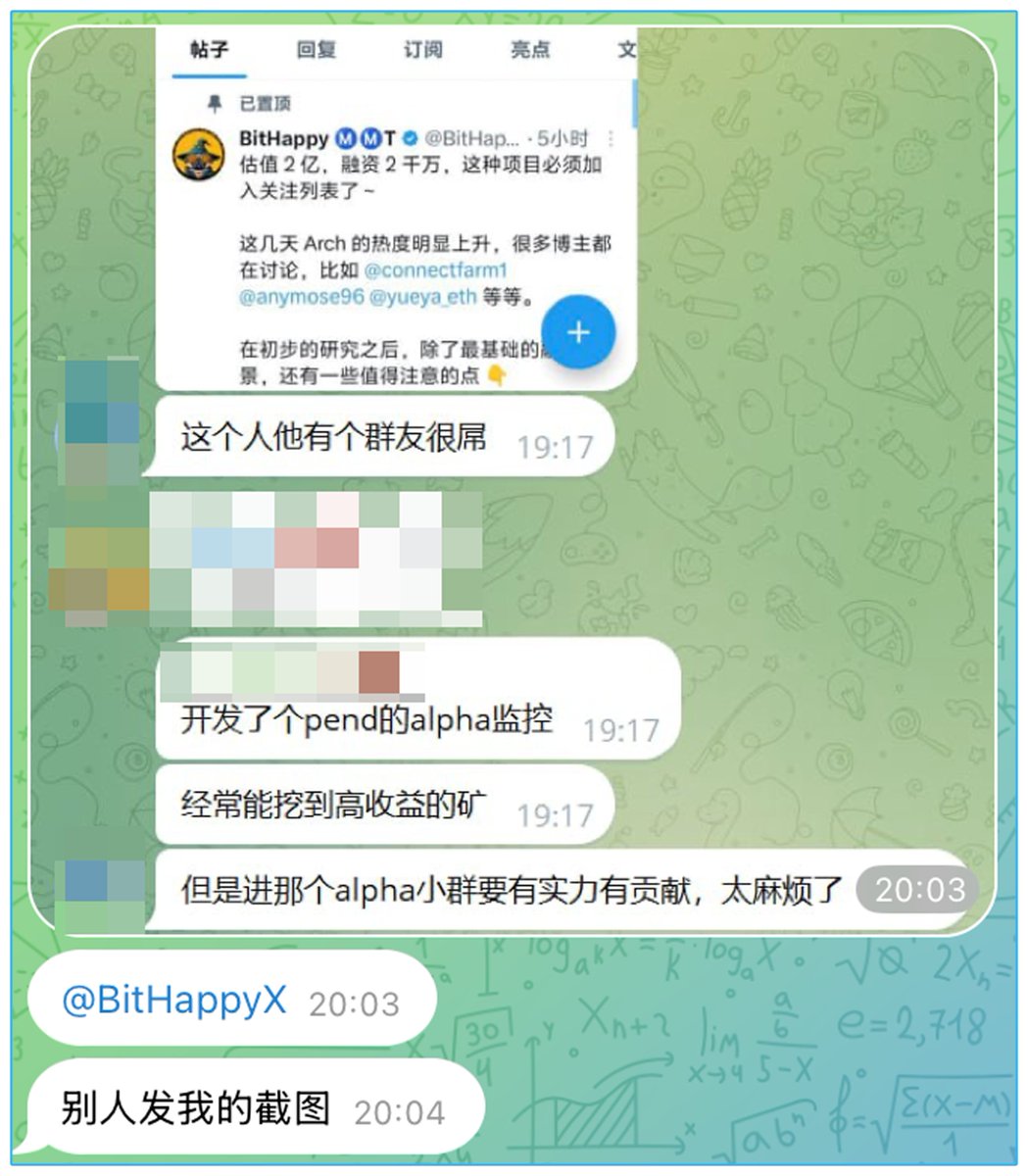 3️⃣ 除 Alpha 群外,还有大户群,他们也很叼,不仅有钱还有消息源和挖矿策略(除了我)。