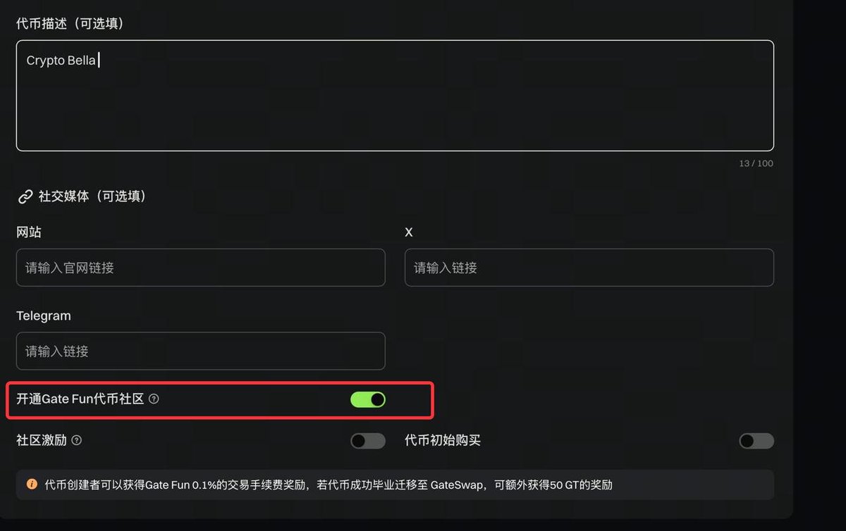 ✅勾选“开通 Gate Fun 代币社区” 就能零配置、零费用自动建好社区; 社区不止能发文字 / 图片 / 视频 / 投票,更关键是发帖按热度从“手续费奖励池”里分 GT(链上手续费也走 GT)