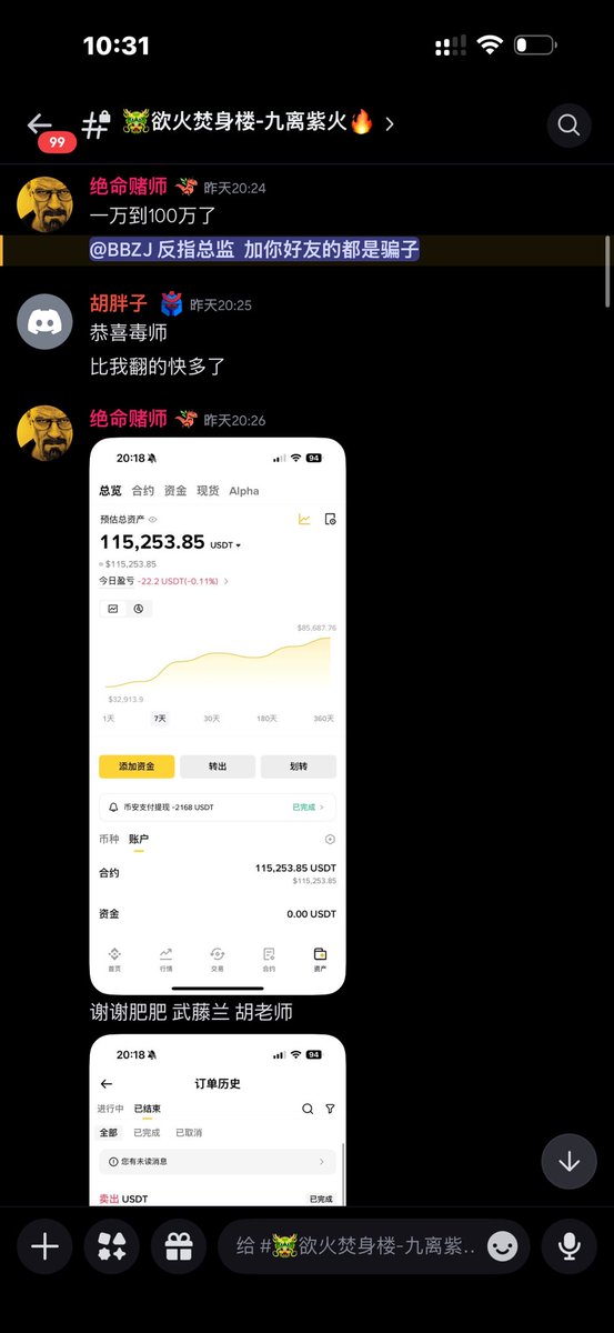 外卖哥1万变100多万了应该 胡总实盘150倍 我加仓空的吃了个翻倍 我图都懒的P了 烂事烂人没遇到,全是好运好事好人 舒服😌,今天直播一会庆祝会