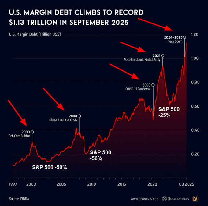 9 月降息后,股市保证金债务激增到 1.13 万亿美元,这说明市场已经集体上车。