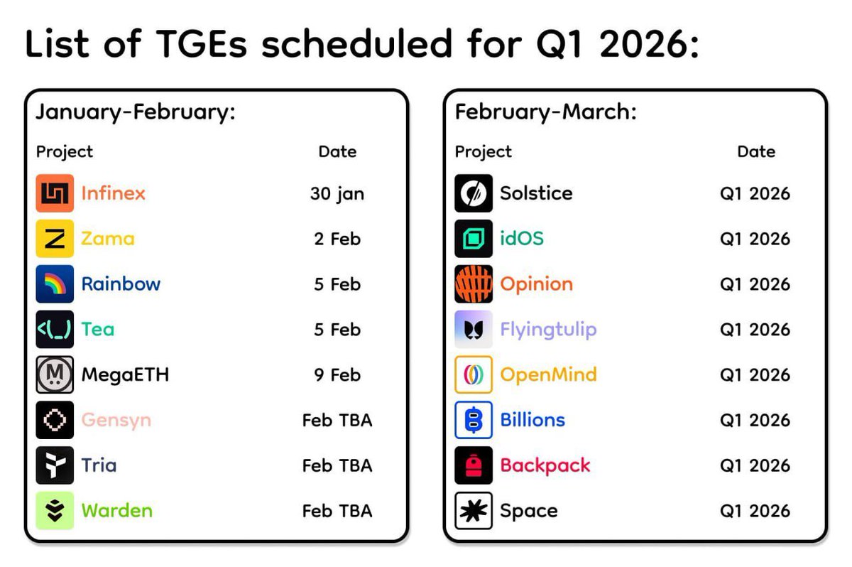 今日继续分享 2026 Q1 等待中的 Token Launch 清单,这些都是我个人关注的、感觉有机会的项目。