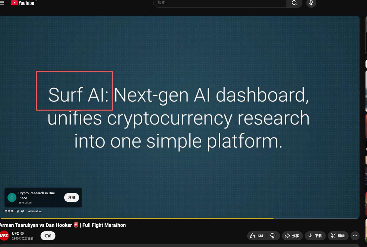 在油管上正在看UFC比赛录像,突然插入一个广告,习惯性关闭之前突然感觉有点眼熟 @Surf_Copilot 😂😂