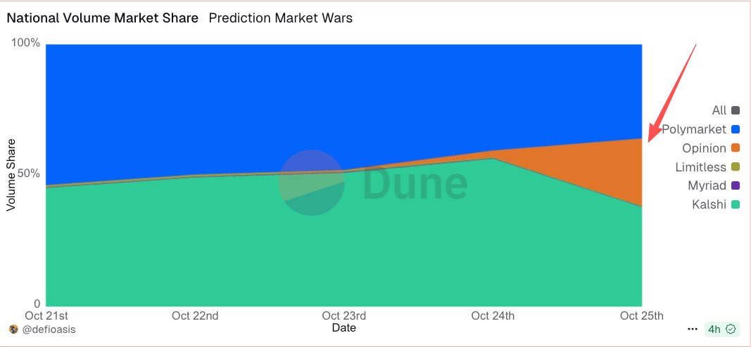 看数据 @opinionlabsxyz 还真挺猛的,直接从几乎Nobody变成了业内No.3 ,要知道这还是没有完全开放的情况下,已经从两极争霸里撕出来一个肉眼可见的口子。