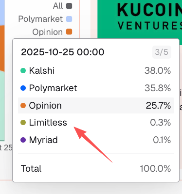 现在也理解为啥小光头 @cjhtech 要跳来跳去搞事了,因为 @trylimitless 的marketshare数据在图里几乎都看不见,如果不是他个人折腾, $LMTS 早就100M以下了。