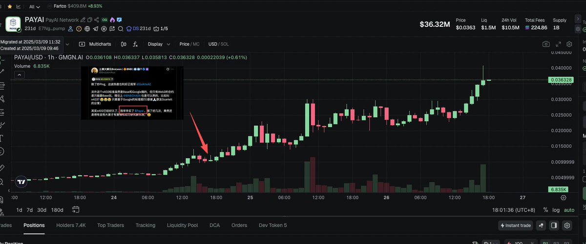 这次x402 我没买上 $Ping ,但也不想追,因为在研究群里老早大家在402的研究里没有这个,但有 $Payai 。