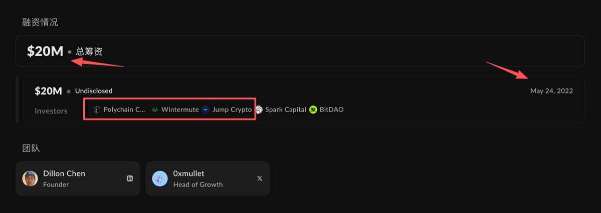 🍀 投资人是Polychain Wintermute Jump 而且融了20M,可惜是3年前,不知道钱还剩多少,但这些机构的背书还是值点钱的。