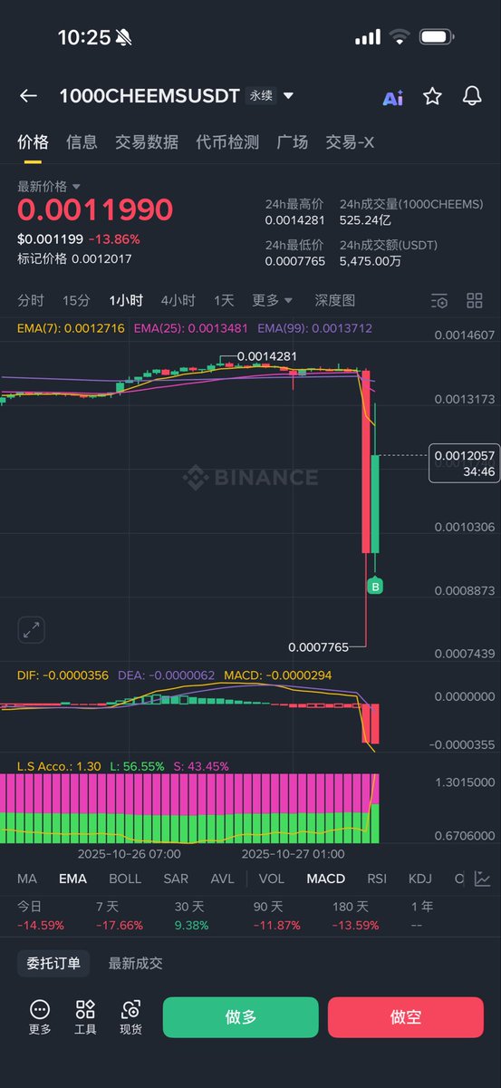 刚看到 $cheems 突然闪崩,了解了一下好像是因为币安关了提币导致链上与Cex不能搬砖,有人趁机砸盘杀多头。