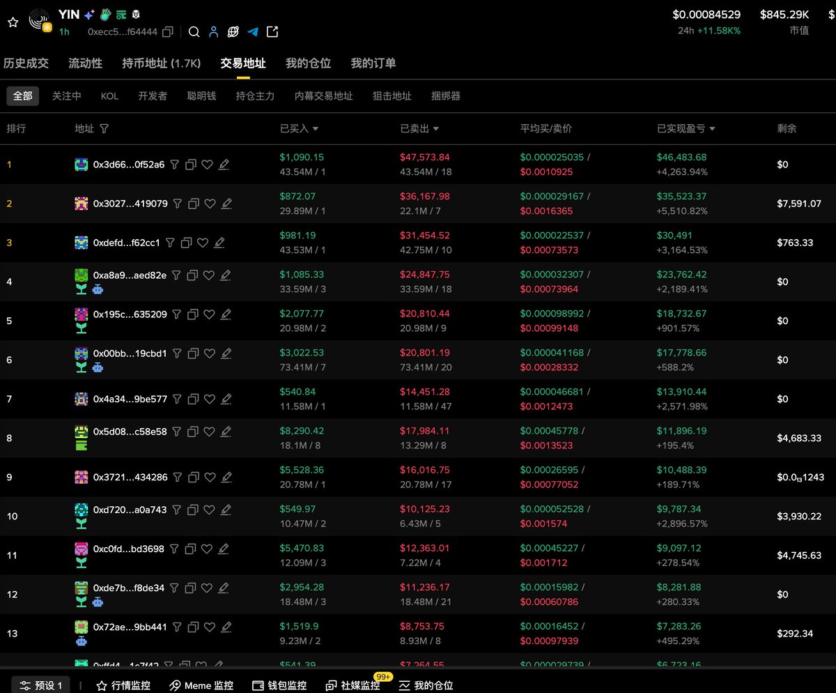 出货的这些地址都是没其他任何币,全是只有个 $YIN