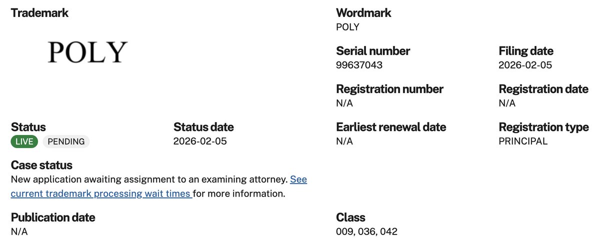 最新: ⚡ Polymarket 的母公司已在预测市场平台预计推出代币之前提交了“POLY”和“$POLY”的商标申请,具体细节尚未透露。