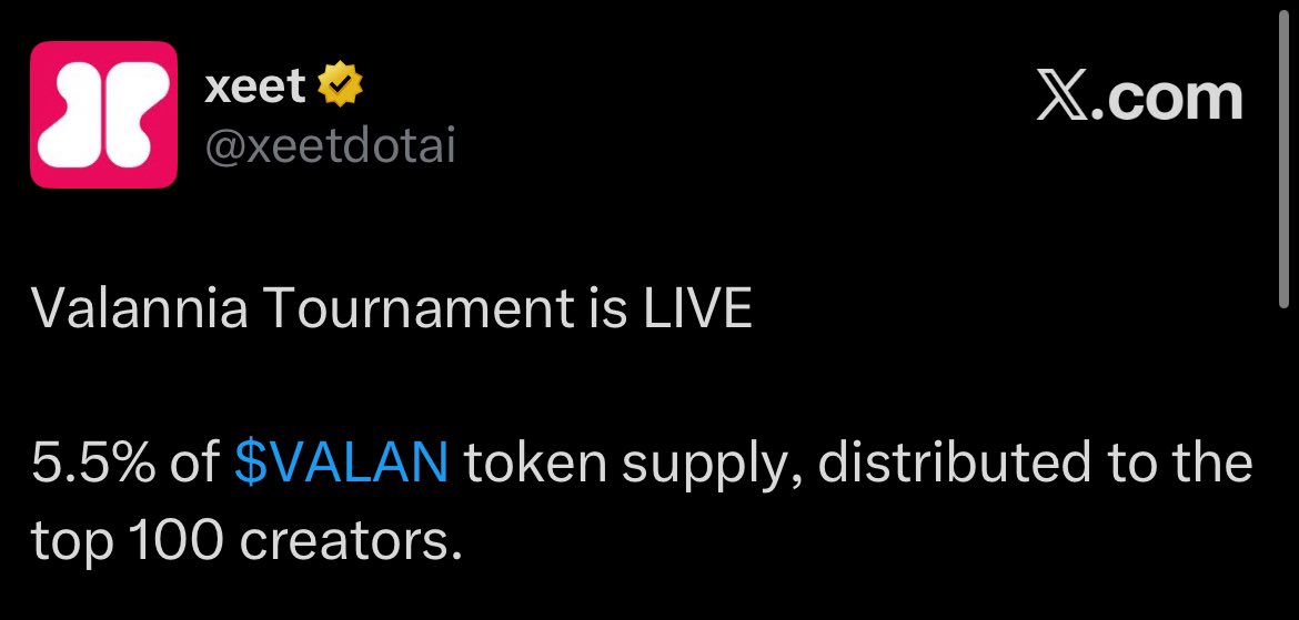 $VALAN 代币供应量的 5.5% 将分配给 Xeet 上的前 100 位创作者,数额巨大吧?