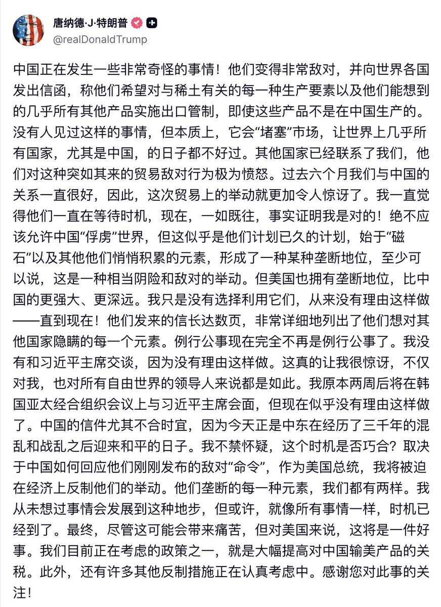 3️⃣ 他将利用“稀土垄断”这一点来正当化关税升级