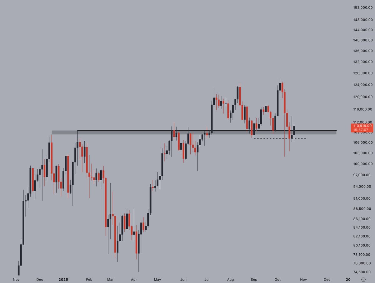 Key area for #Bitcoin to overcome here. Currently looking like a swing failure at resistance. Would go easy on the longs - and look to bid a new higher low in the $112k region if we close like this. https://t.co/yNzBr0Gvwm