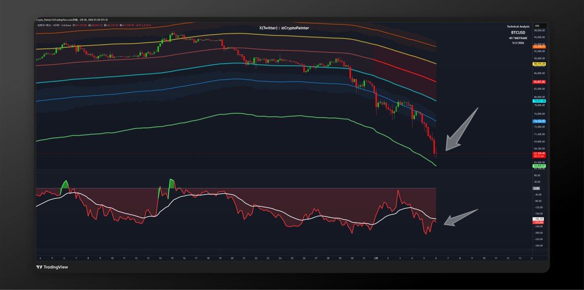 所以如果当下这里BTC没有收针反弹,我反倒更开心了,因为跌穿超卖线,就是史诗级别的多头清算,价格可能去55k一步到位...