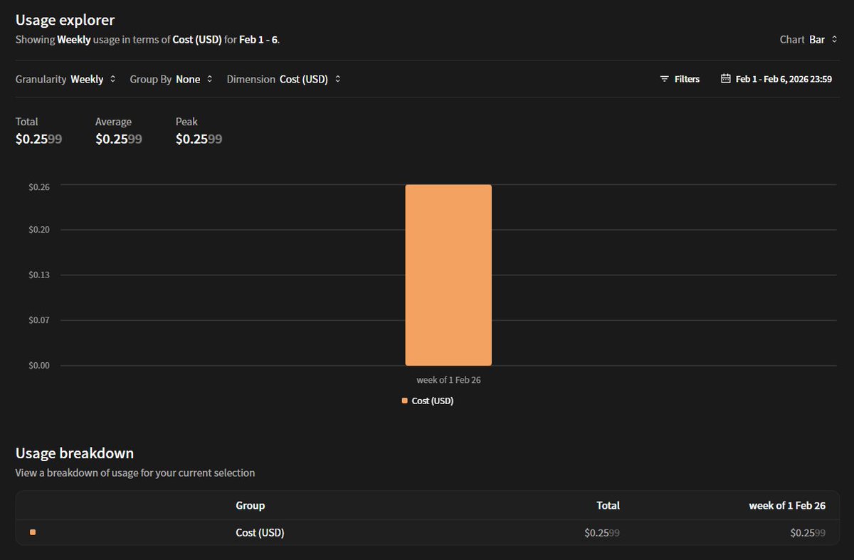 目前大致预估了一下,每天成本在10美元左右,控制好交互频率,还是可以持续下去的。