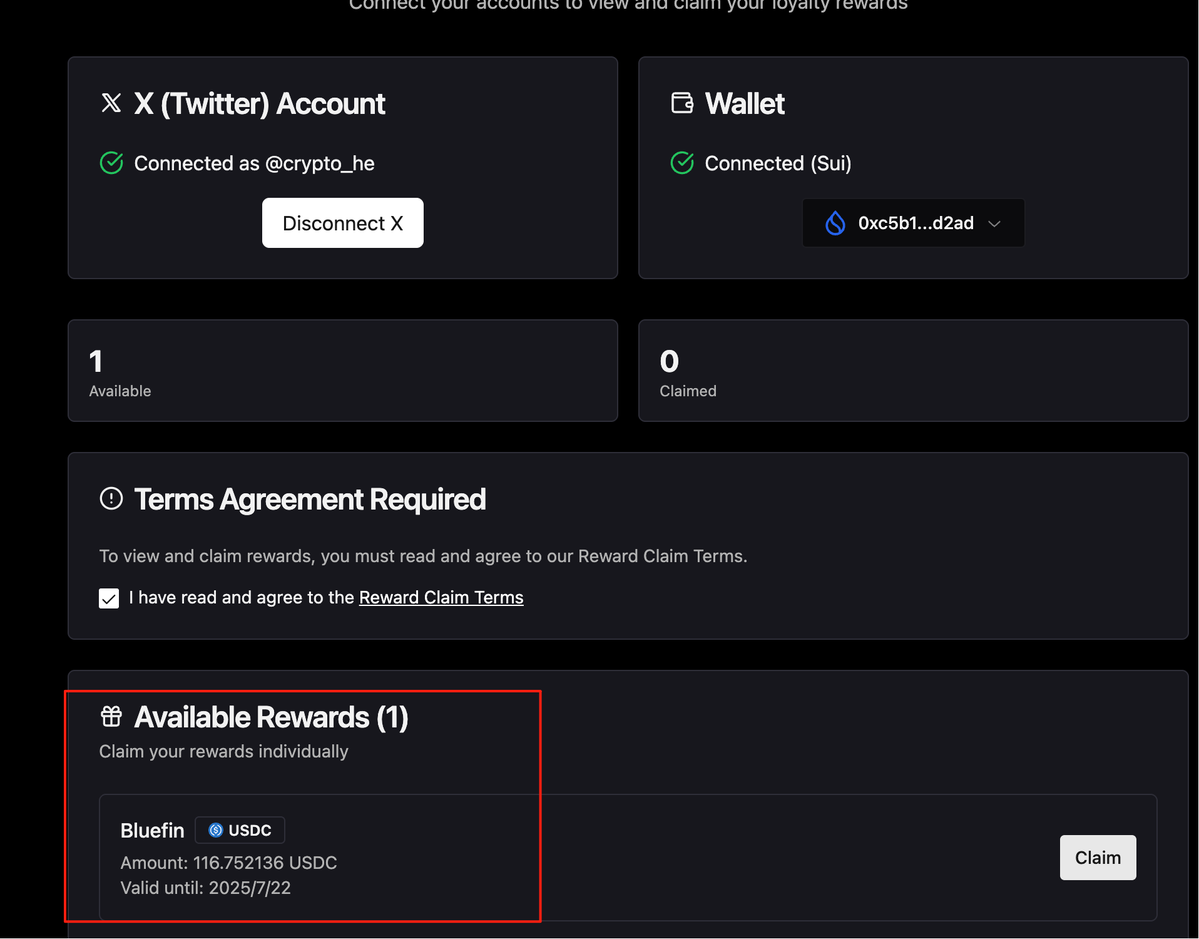➣今天群里说查一下iota的空投,我阴差阳错发现自己可以领100多刀 $Bluefin 的空投,之前参与的可以查一下👇