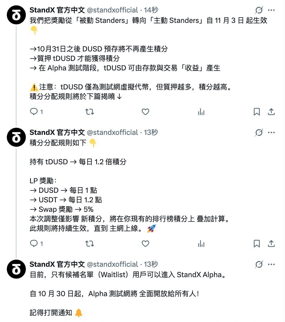 3.StandX 11月3日 PERPS ALPHA 启动存钱末班车