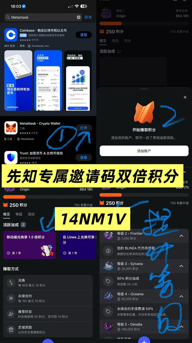 1.@MetaMask 第一季活动必刷邀请码14NM1V双倍积分