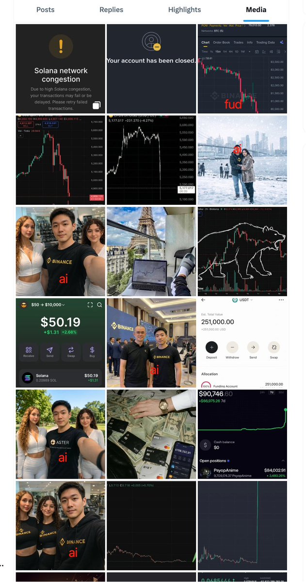 ②大量ai作图与cz合影内容+同样的fud文案+图