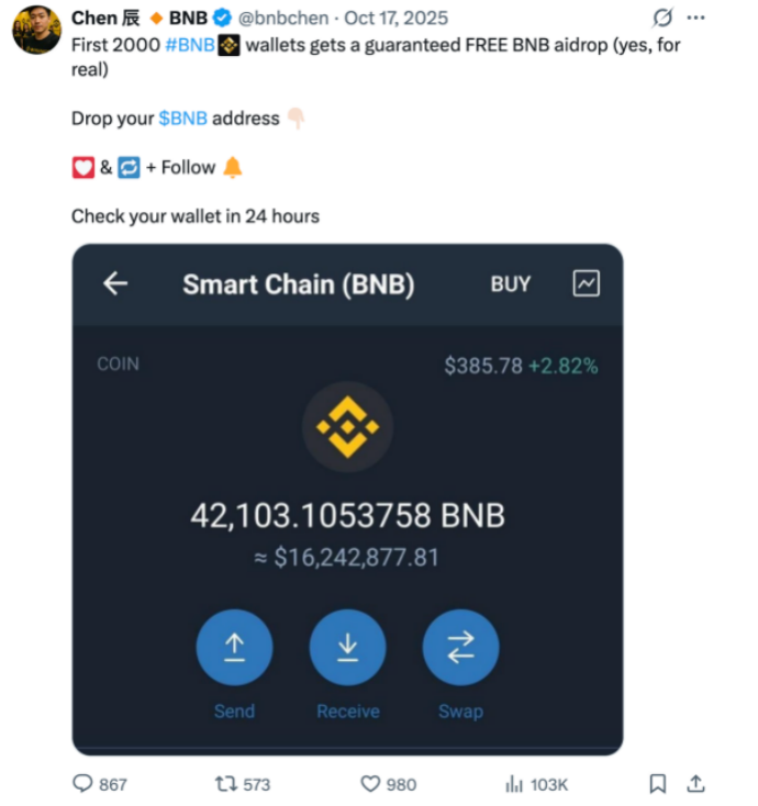 验蠢了兄弟们,这种作假恶意fud的也太低级了,不过这种影响还要CZ @cz_binance 出来辟谣我也是想象不到的