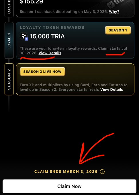 2.@useTria 上币安alpha了,领空投,在app里自取