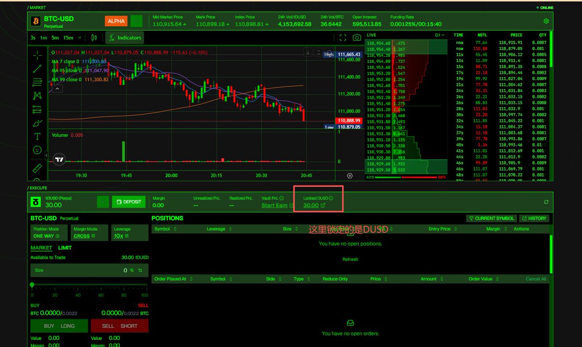 tDUSD 就是你在测试网能用来交易、开仓的资金。