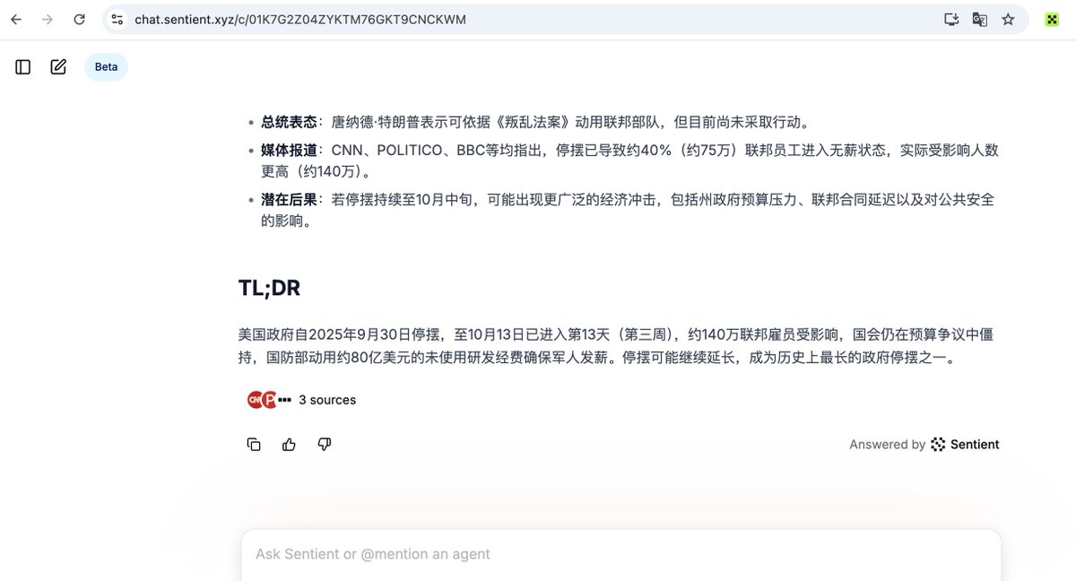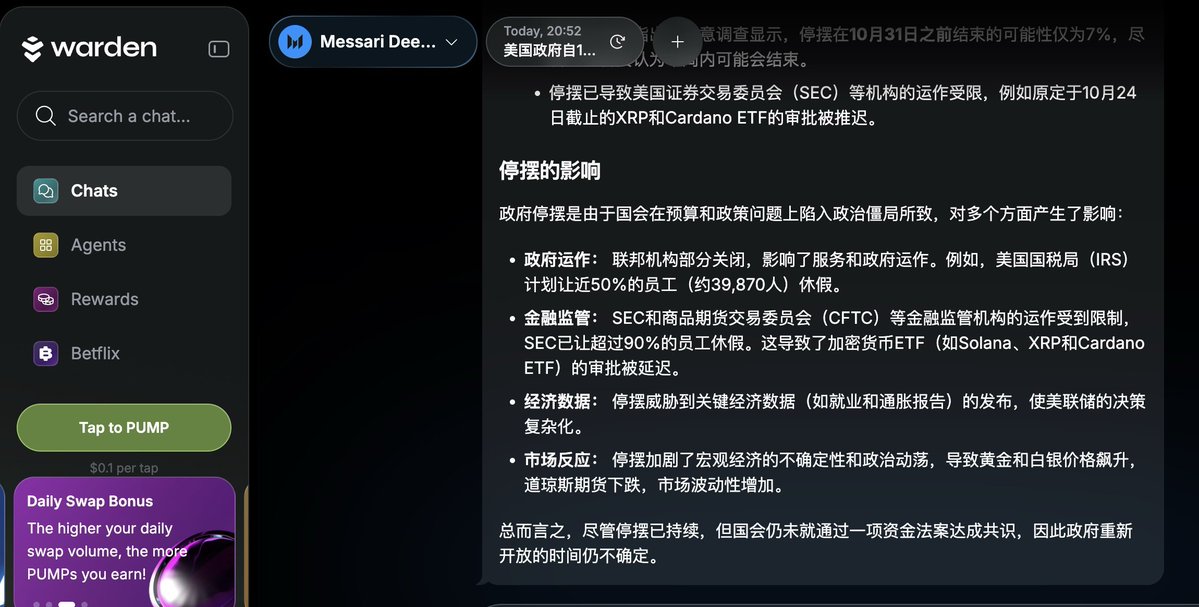 问了下 @wardenprotocol 智能代理 关于美国政府自10月1日停摆,大概停摆结束时间是什么时候? @wardenprotocol