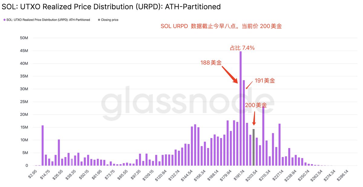 目前188这里占比已经大幅下降,从8%以上下降到 7.4%了,然后191-200美金左右也积累了一些