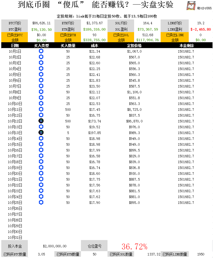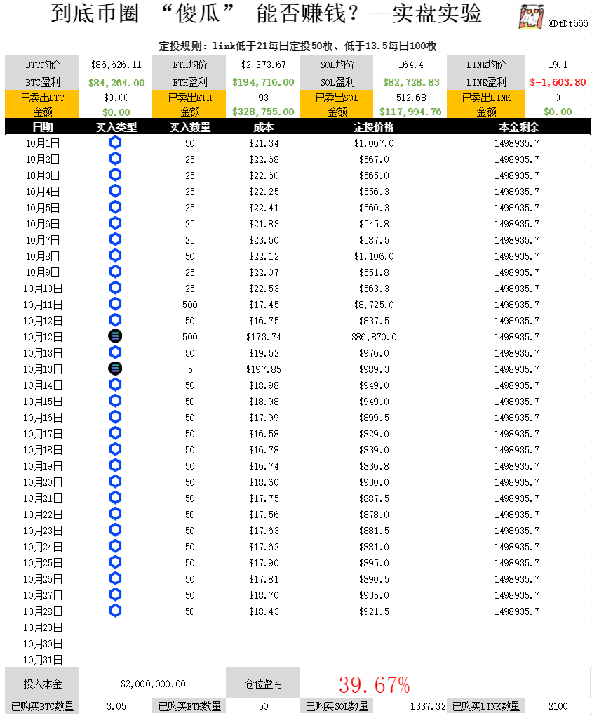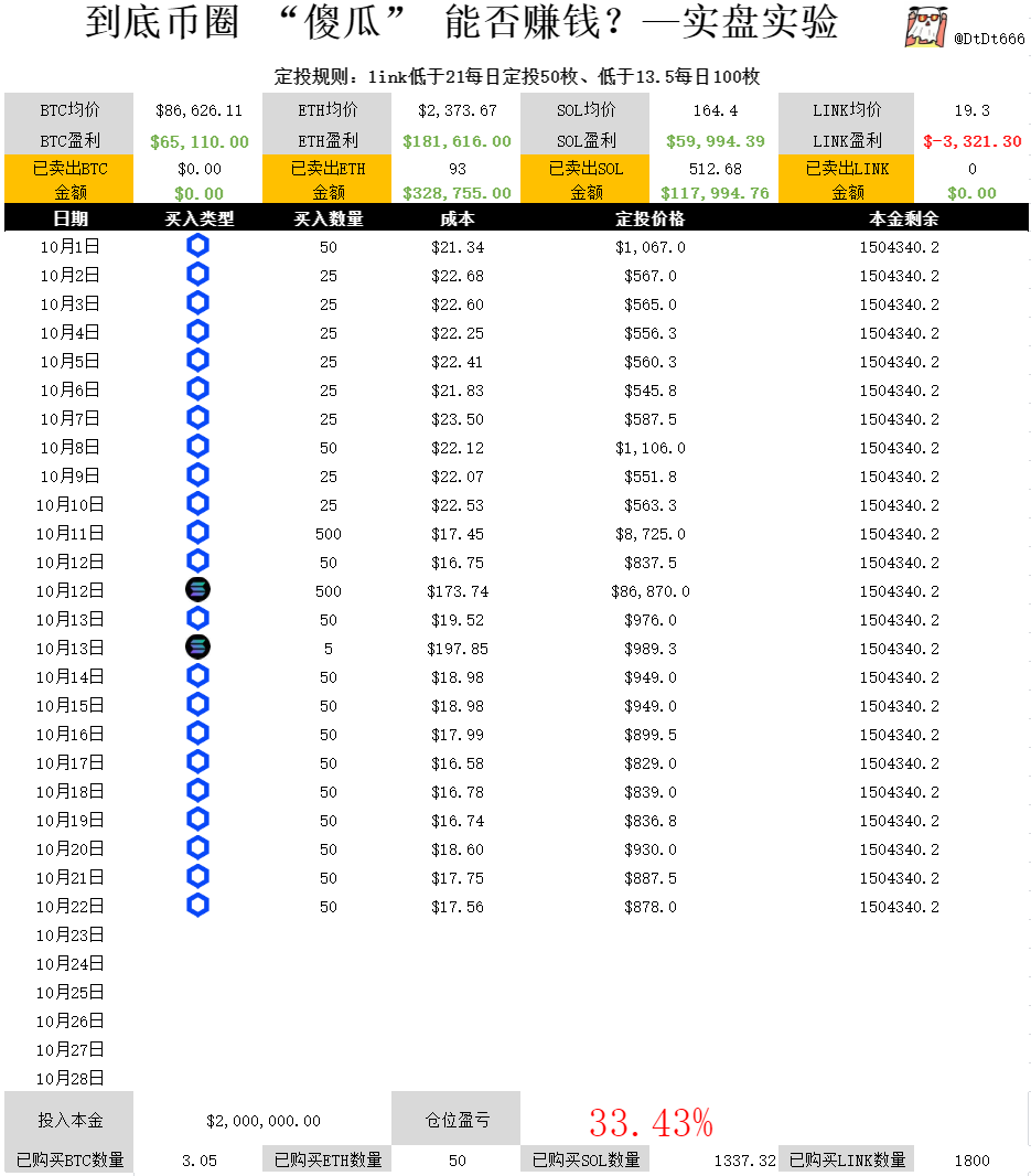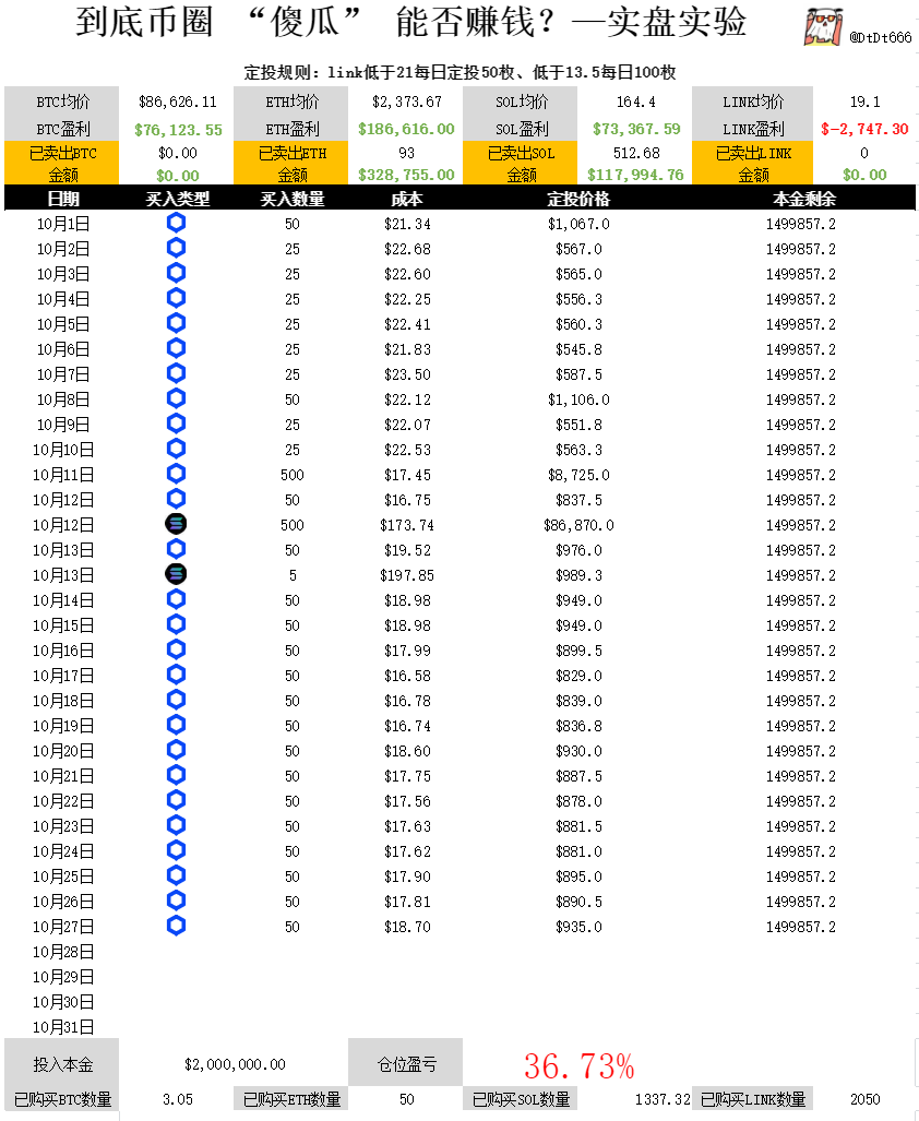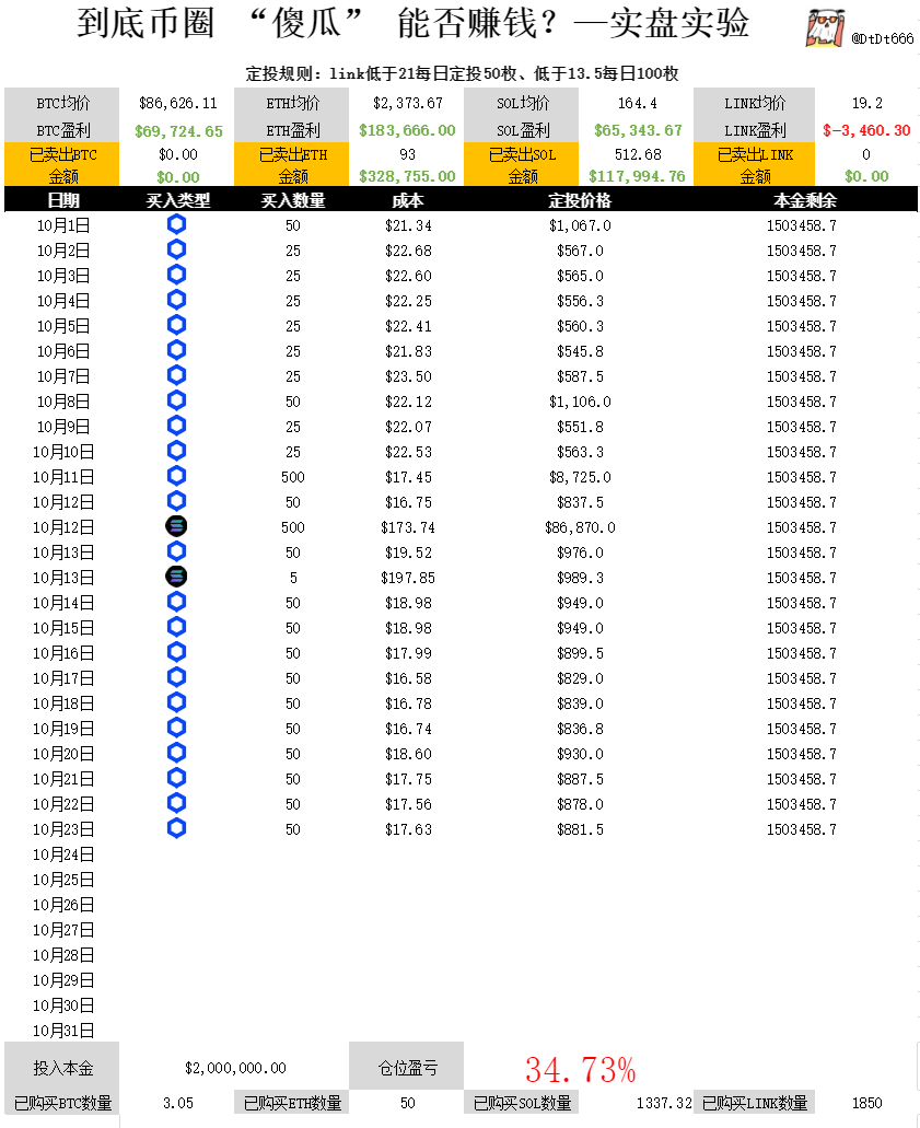 4,个人操作,我今天会 在sol,OKb,ETH(昨天已经挂单),狗狗,挂单马丁。每个标的5万u,共计20万u短线单。 当然,定投策略保持不变。
