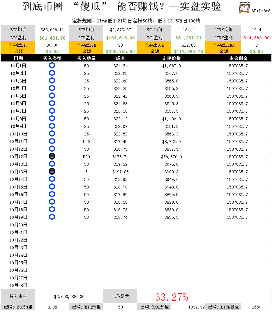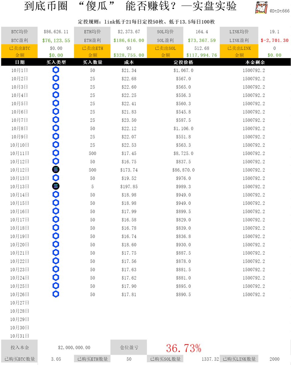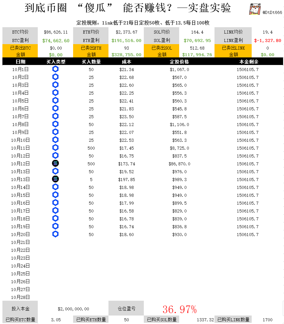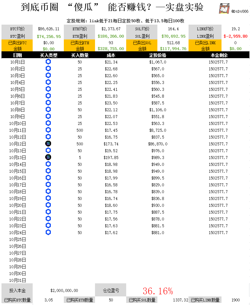 4,个人操作,我今天会 在sol,OKb,ETH(昨天已经挂单),狗狗,挂单马丁。每个标的5万u,共计20万u短线单。 当然,定投策略保持不变。