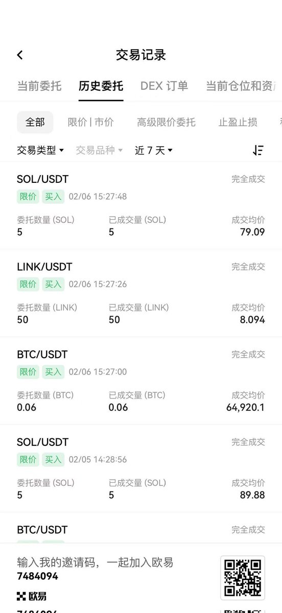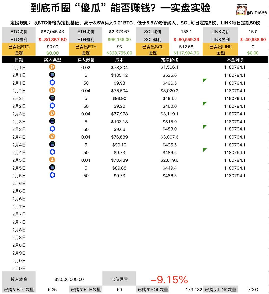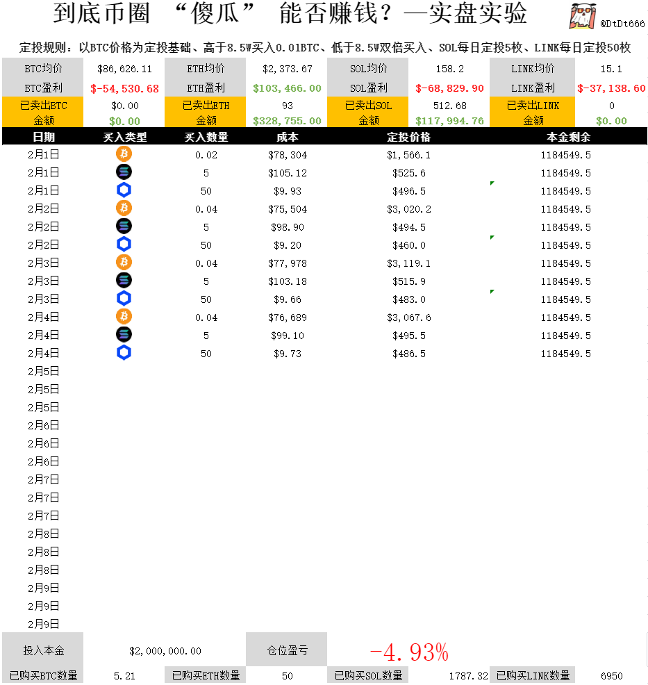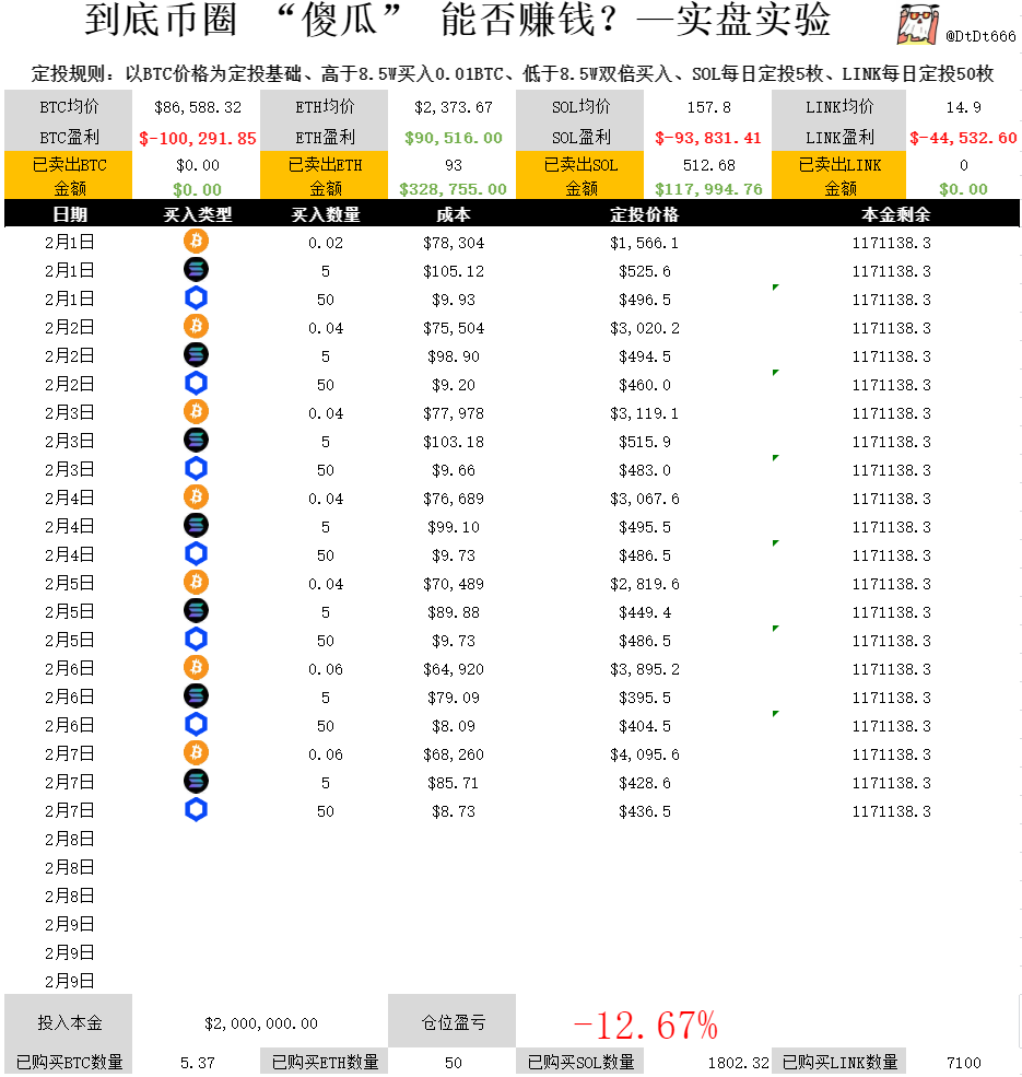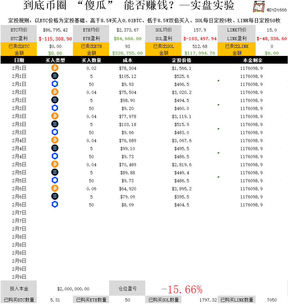 今日操作:继续无脑买入0.02枚BTC、5枚SOL、50枚LINK