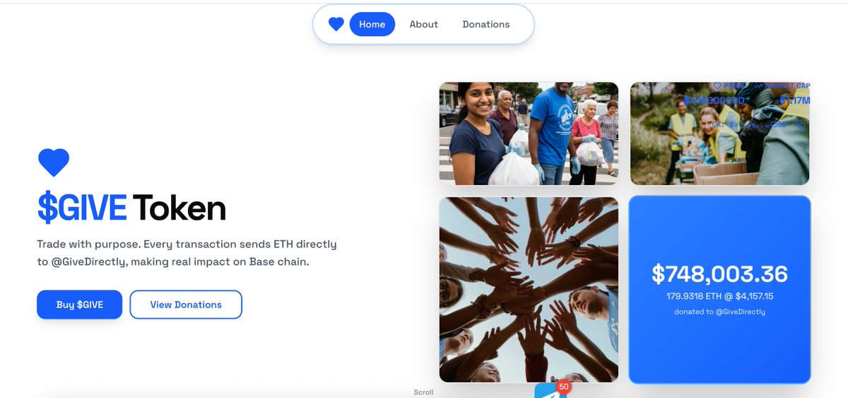 1、捐款给 @GiveDirectly 的纯慈善代币,以 $GIVE 为代表,捐款已经突破60万u,不过 @GiveDirectly 目前不活跃、尚未回应,目前2.7m