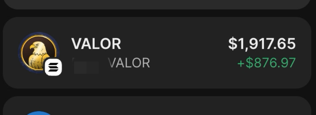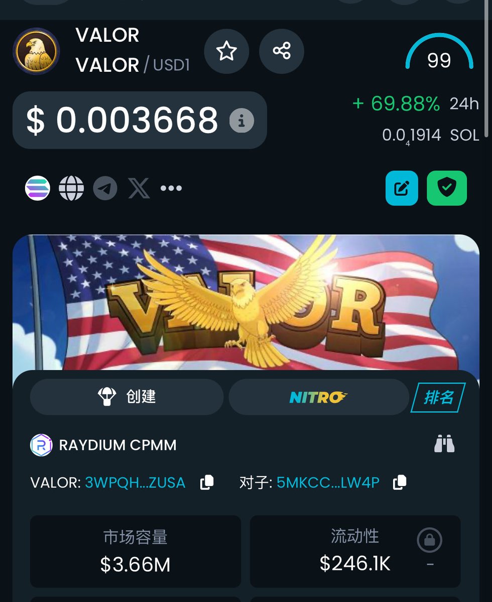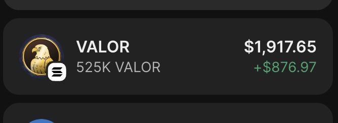 昨天看到这个老外交易员喊单 $valor 没有上车,从2m涨到了3.6m咬咬牙买了10sol。
