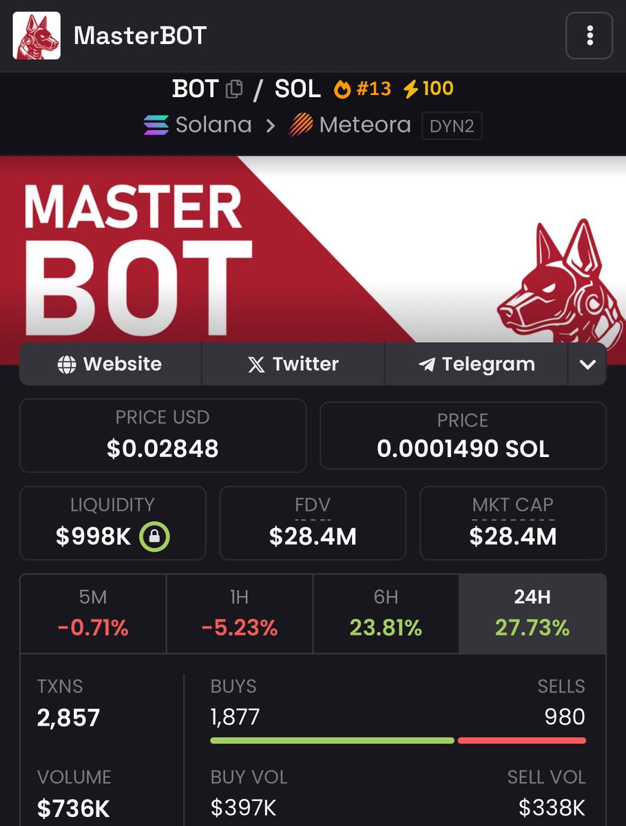 用 $BOT 代币加入每日预测市场,预测哪种 AI 策略最有效,代币有消费场景。现在市值28m,老规矩买了10个sol,我发出来的都是我自己买的,昨天喊的项目也翻三倍了。