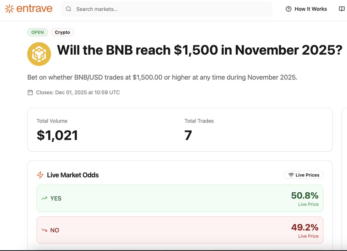 bnbchain名牌支持的的预测市场项目什么来头?速冲最热的预测市场叙事,@TryEntrave 还不卷! https://t.co/ItONv5J47b