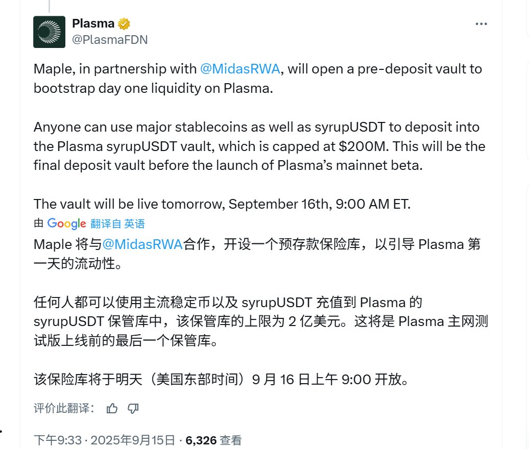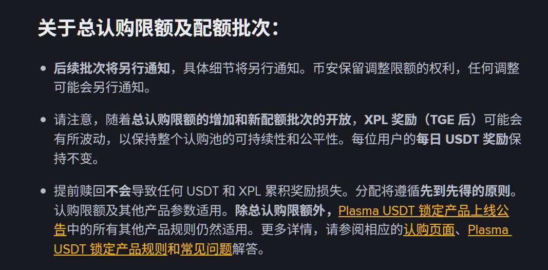 币安 plasma 额度又来了,17:00 放 2.5 亿额度,后续还有 5 亿额度