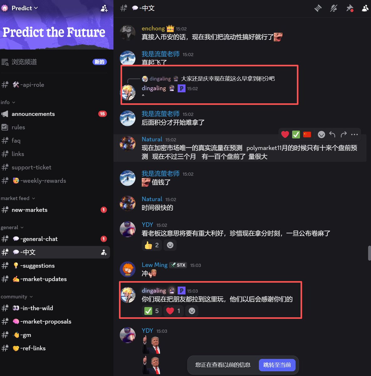 结合他下文中提到的本月有几个大的要宣布,个人估计即将会有好些个Predict相关的大利好即将公布,届时积分会非常卷。